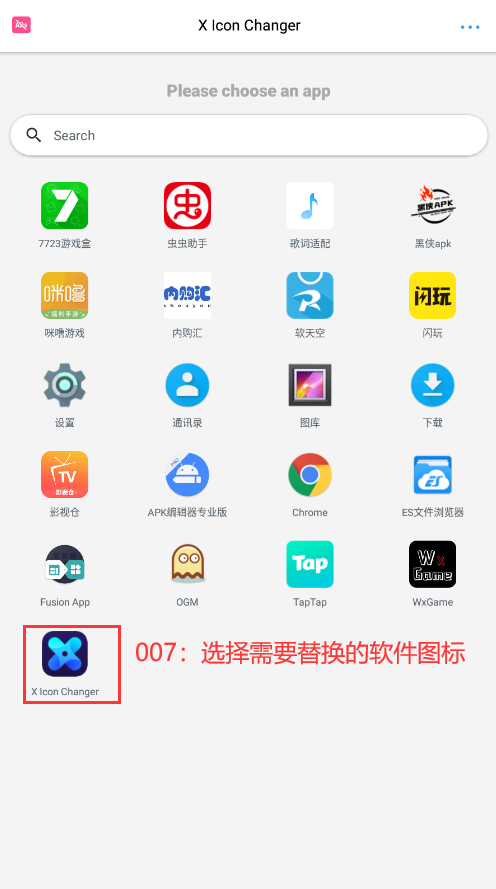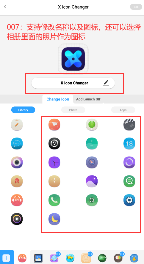 3、对选择的软件可以进行名称以及图标修改,在这里还支持手机相册图片替换。