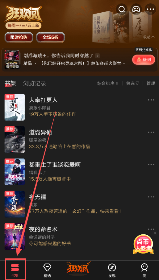 4、管理书架很方便,浏览记录里会保存你的阅读进度,软件会根据你的阅读兴趣进行个性化推荐。