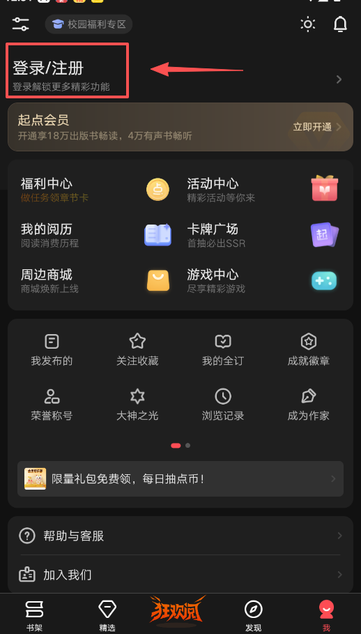 3、登录后能解锁完整功能,比如开通起点会员可以畅读出版书和有声书。