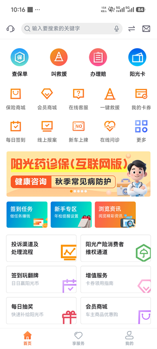 整合查保单、叫救援、办理赔等核心服务入口,同步提供保险商城、在线问诊等功能,一站式覆盖车主用车养车全需求。
