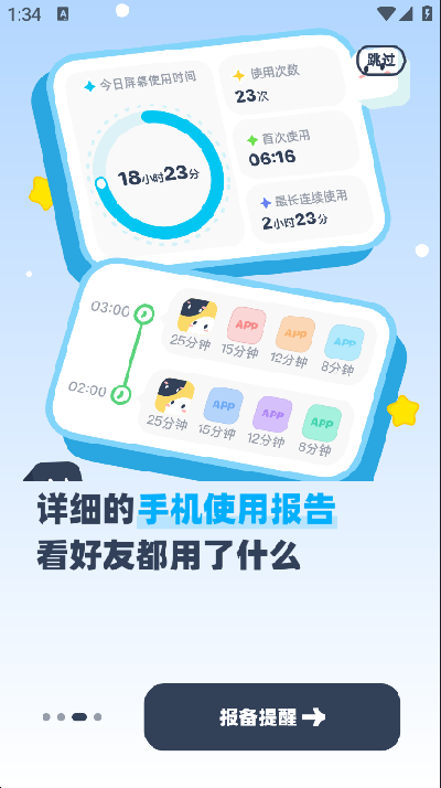 2.设备状态与使用分析:同步对方手机电量、网络状态、存储情况,生成屏幕使用时长、解锁次数及APP使用记录报告,助力互相监督健康用机。