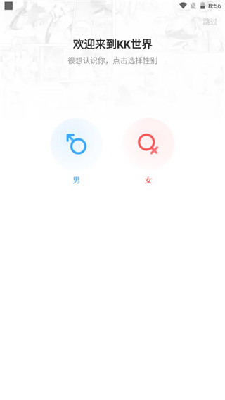 3、根据自身情况选择性别,或者点击右上角的跳过按钮