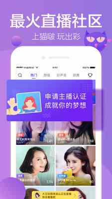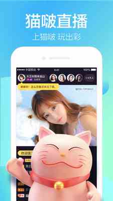 2、猫啵直播免费版,猫啵真人直播秀场。平台聚集高颜值明星大咖、帅哥、热门网红、校花校草,还有音乐、舞蹈、户外等热门直播,实时互动,满足你的所有需求