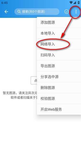 3.点击右上角的三个点,选择“网络导入”,并输入有效的图源地址。