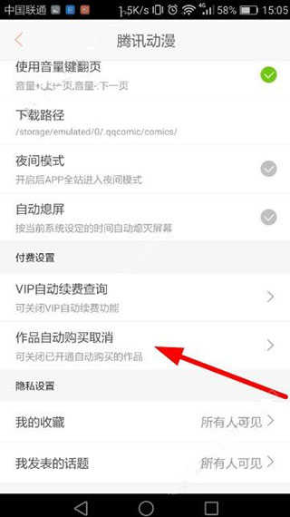 2、然后点击【作品自动购买取消】,进入设置即可大功告成~