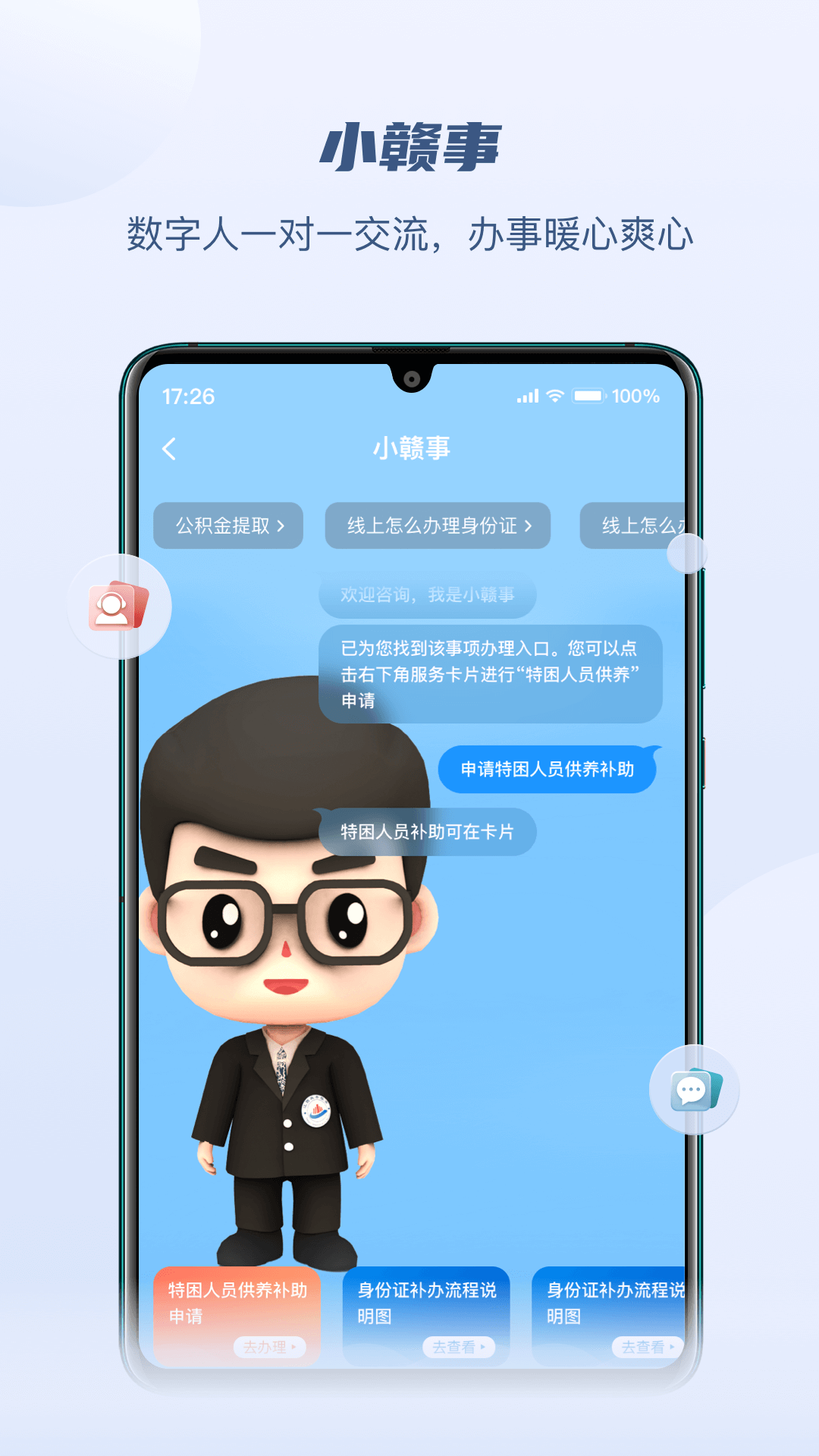 4.智能客服"掌上答":提供智能问答互动服务,并将江西12345政务服务热线统一受理.转办.督办,营造有温度的人机交互式办事体验。