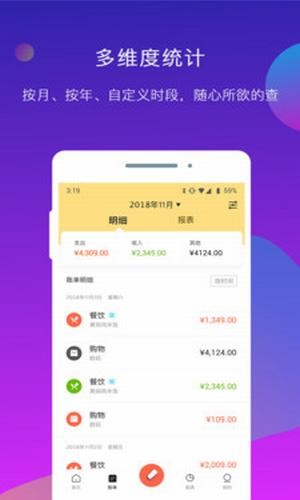 2、软件内置统计功能,能够通过图表和数据的形式清晰地展示各种账目的收入和支出情况,方便用户进行个人财务状况的分析和管理。